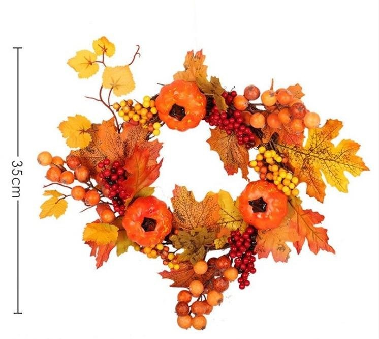Deze kunstmatige herfstkrans is een unieke decoratie, speciaal ontworpen voor de voordeur en verkrijgbaar in verschillende maten zoals 30cm, 35cm, 50cm en 70cm.